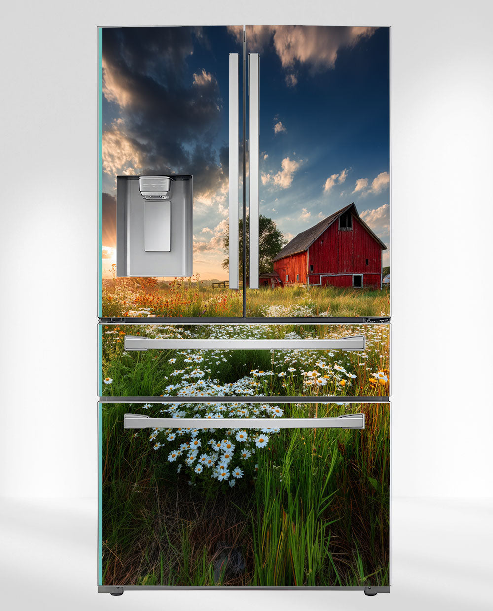 Capture the serenity of summer fields and glowing sunsets with this country landscape magnet. A red barn among wildflowers brings peaceful, rustic beauty to your space.